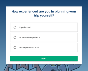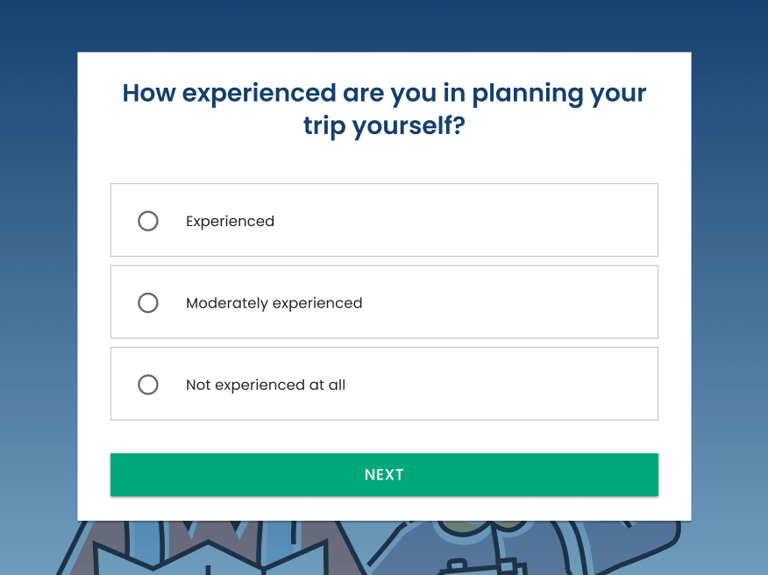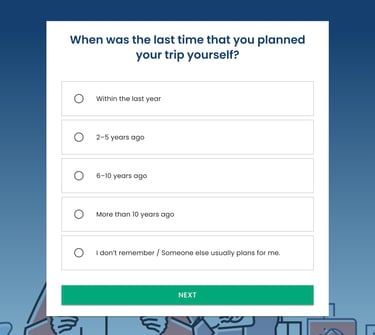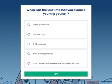 Before users start the main flow, I included two short questions about their travel-planning experience and how recently they planned a trip. This gives a baseline for interpretation, so we can distinguish potential cognitive difficulties from a simple lack of familiarity with travel booking.